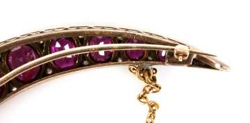 | Approximately 10 carats in Natural Ruby. Brooch is numbered 11731. 7 dwt. Payment must be made by cash, check, certified check, money order, or wire transfer. Purchases paid for using personal checks will be held until payment has cleared the bank (typically 5-7 business days). Non-US purchasers must make payment by wire transfer. |