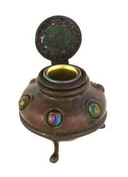 | Lot #: 66 Tiffany Studios, New York, Bronze Inkwell with Turtle Backs and Cabochons |