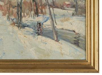 | Lot #: 93 Walter Emerson Baum (American, 1884-1956) Winter Scene with Red Barn |