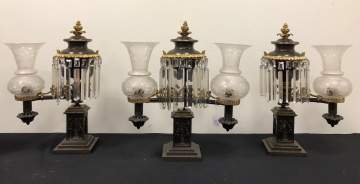 | Lot #: 205 Gothic Three Piece Argand Lamp Garniture |