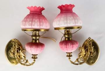 | Lot #: 132 Pair of Victorian Satin Glass Wall Lamps |