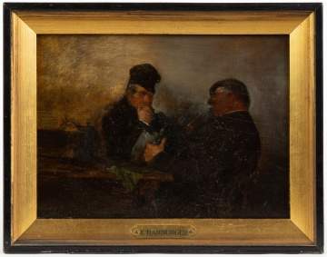 | Lot #: 241 E. Harburger Painting of Two Men with Tankards |