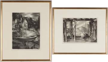 | "Late Afteroon, Eastport Maine": 1931. Penciled signed 'Stow Wengenroth' (lower right). Image 11 3/4 x 9 1/2". "Low Tide, Eastport Maine" : August, 1931. Penciled signed 'Stow Wengenroth' (lower right). Some overall foxing. Image 9" x 12 1/2". |