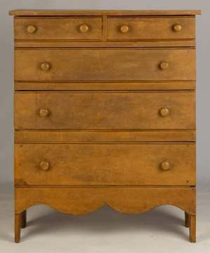 | Lot #: 277 5 Drawer Butternut Chest in Yellow Paint |