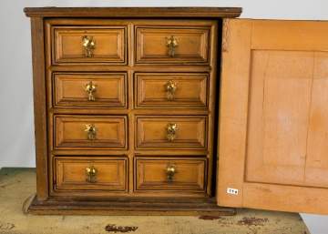 | Pine, circa 1800. Original paint & foliate hinges. Rosehead nails. 8 drawers. |