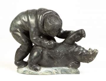 | Lot #: 363 Nutaraaluk Iyaituk Inuit Sculpture, "Man Slaying Polar Bear" |