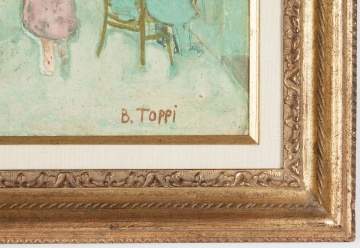 | Oil on canvas. Signed 'B. Toppi' (lower right). Signed and titled 'Rue Sicilienne' (on reverse). |