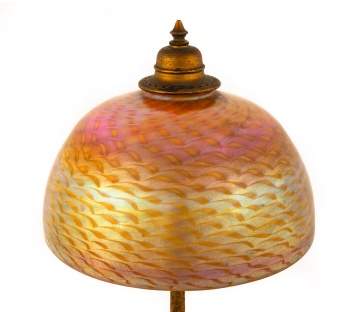 | Favrille shade. Base stamped Louis Tiffany Furnaces Inc. #368. Shade inscribed L.C.T. Favrille. |