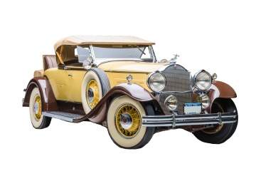 | (Mileage: 26,062) Yellow with Brown Fenders, Six Wheel Rumble Seat Roadster with Brown Leather Interior. Overdrive added for drivability. Trippe driving lights, dual spot lights, dual welled fenders, hood ornament, window wings, luggage rack, trunk, trunk cover, golf door, and wide white wall tires on spoke wheels. The car achieved an AACA 2nd place National Award at York, Pennsylvania and an AACA 3rd place National Award as recently as 2007. |
