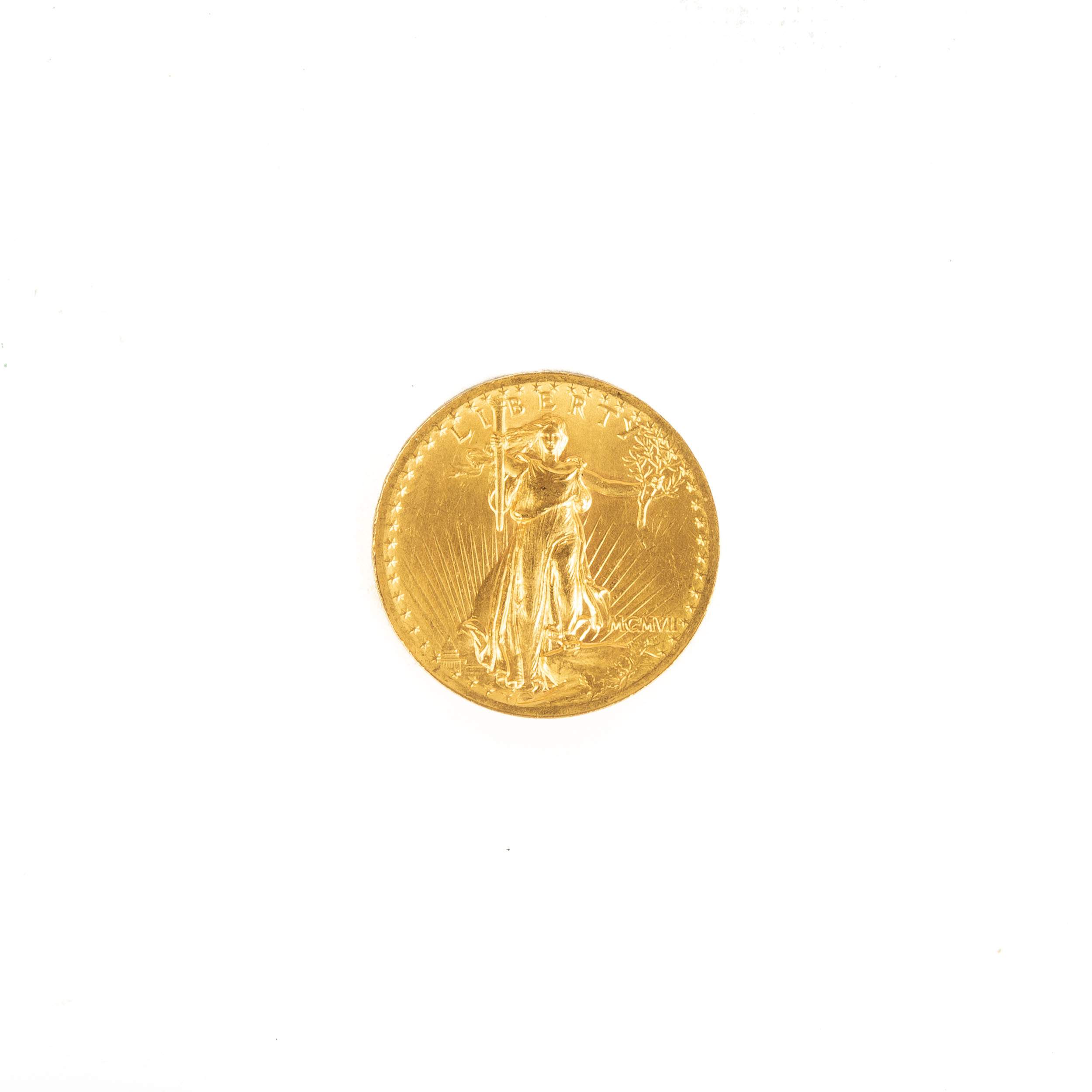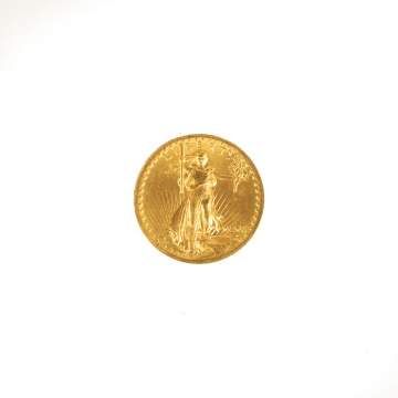| Lot #: 20 Fine $20 Gold High Relief St Gaudens Coin. Graded MS63+. |