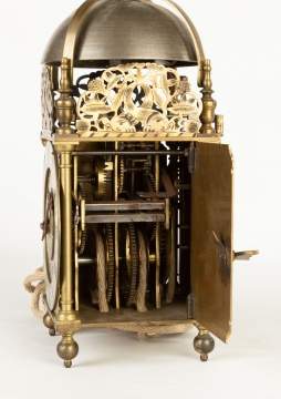 | Quelch, Oxon. Engraved brass and silvered chapter ring. Time and alarm. |