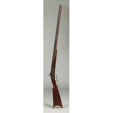 Lockplate marked J. Golcher & engraved w/small duck hunter scene.