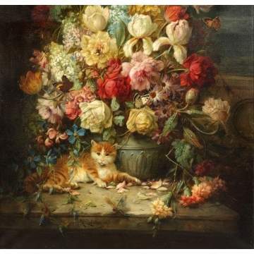 | Lot #: 260 Hans Zatzka (Austrian, 1859-1945) Floral still life with cat |
