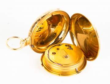 | Lot #: 82 18K Gold Hunter Case Pocket Watch |