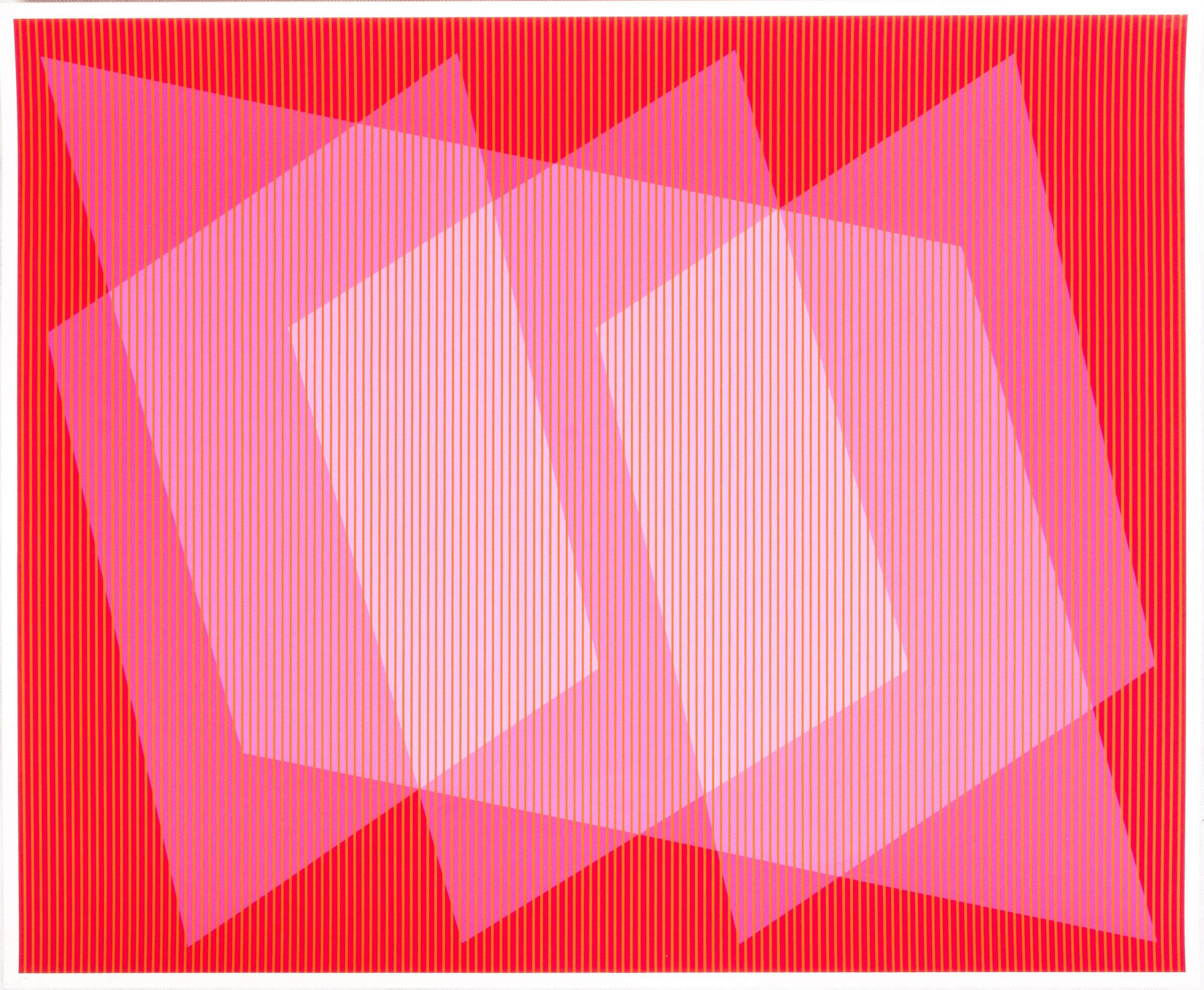 | 1971. Serigraph on paper in 5 colors (red, org, 3 pnk). Signed 'J. Stanszak' (lower right) and numbered edition (at left). Artist Proof Number 1 . |