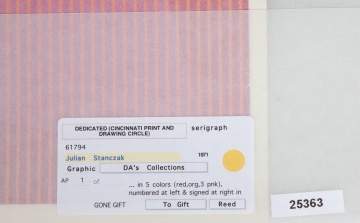 | Lot #: 6 Julian Stanszak (American/Polish, 1928-2017) Dedicated (Cincinnati Print and Drawing Circle) |