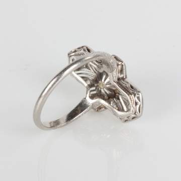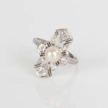 | Lot #: 43 Ladies Black Starr & Frost Platinum, Diamond & Pearl Ring |