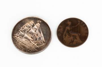 | Lot #: 204 One Troy Ounce Silver Coin & 1906 British One Penny |