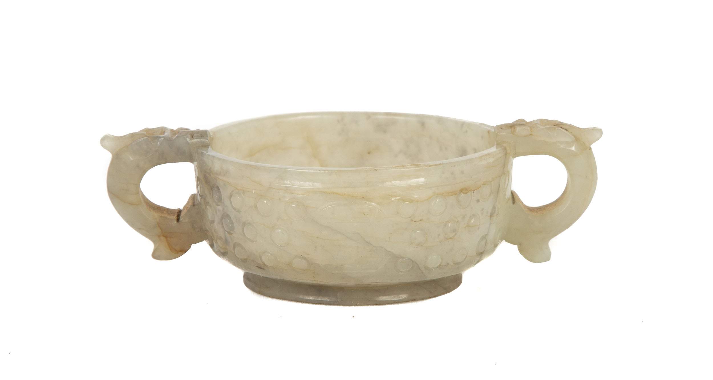 | Lot #: 40 Chinese Carved Jade Handled Cup |