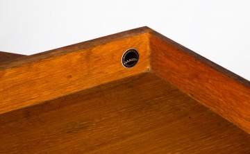 | Andreas Tuck, Denmark, circa 1950. Teak, stained oak, brass. Signed with stamped manufacturer's mark. |