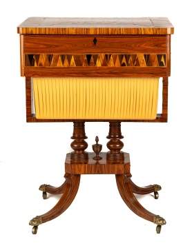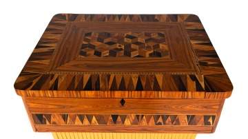 | Lot #: 199 Fine & Rare English Turnbridge Ware Writing Desk & Sewing Table |