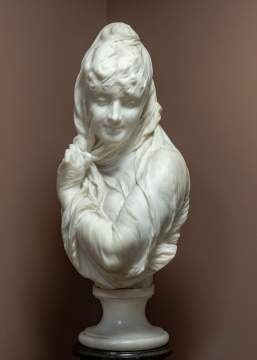 | Lot #: 205 Gaetano Russo (Italian, 19th Century), Marble Veiled Female Bust |