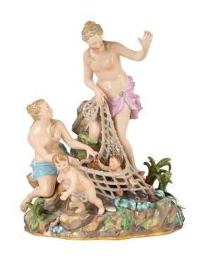 | Lot #: 208 Large Meissen Figural Group-Capture Tritons |