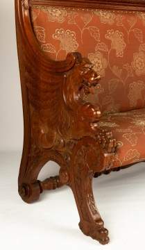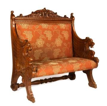 | Lot #: 243 Hall Seat with Carved Crest & Winged Griffins |