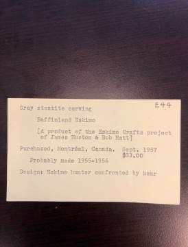 | Product of the Eskimo Crafts project of James Huston and Bob Hatt. Made 1955-1956. |
