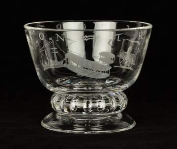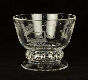 Corning, NY. Signed 'Steuben' (on base). Rare design by George Thompson and Sidney Waugh from the 19040's. Ref #W141. Signed by Sidney Waugh under one of the three caricatures. |