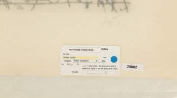 | Etching on paper, in 1 color (blk). Signed (bottom right) and edition numbered "13/75" (bottom left). |