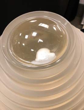 Made in Italy. Frosted glass with magnified center. Marked "Rolly". |