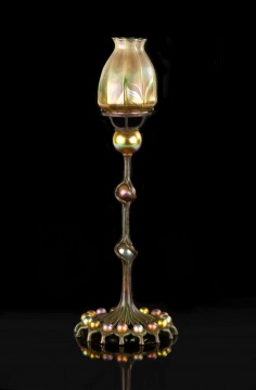 | Lot #: 37 A Fine and Rare Tiffany Studios, New York Favrile Ball Candlestick |