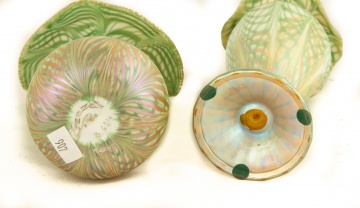 | Lot #: 109 Two Fine Quezal Decorated Art Glass Vases |