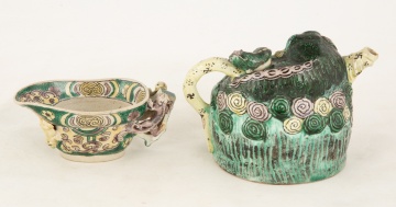 | Lot #: 146 Rare & Unusual Buddhist Lion Famille Verte Teapot and Kangxi Period Famille Verte Libation Cup |