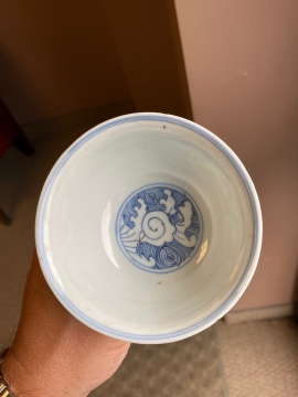 | Lot #: 147 Chinese Blue & White Stem Cup |