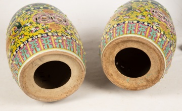 | Lot #: 152 Pair of Chinese Famille Rose Yellow-Ground Garden Seats |
