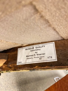 | 18th century. Carved knees and pad feet. Silk upholstery. |