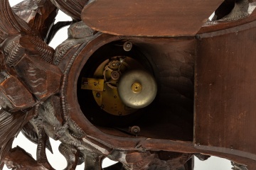 Carved Black Forest Shelf Clock and Pair of Candlesticks