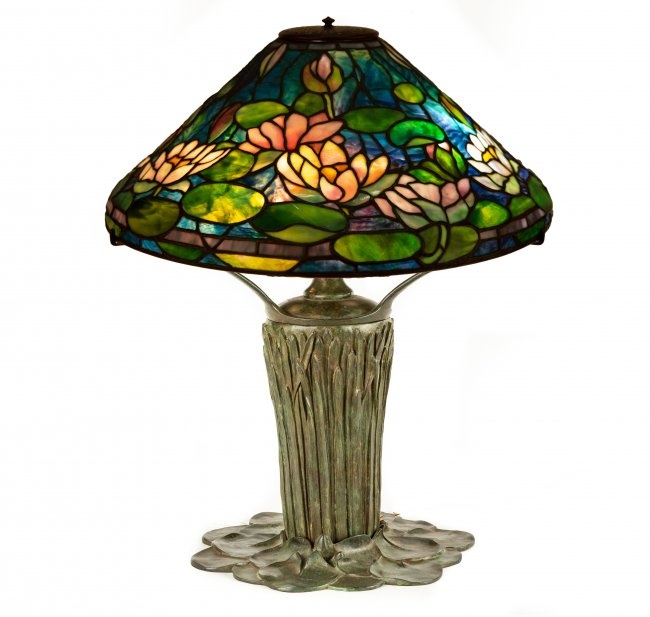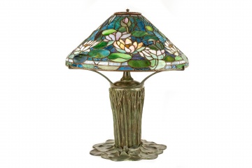 | Lot #: 56 Tiffany Style Leaded Pond Lily Lamp |