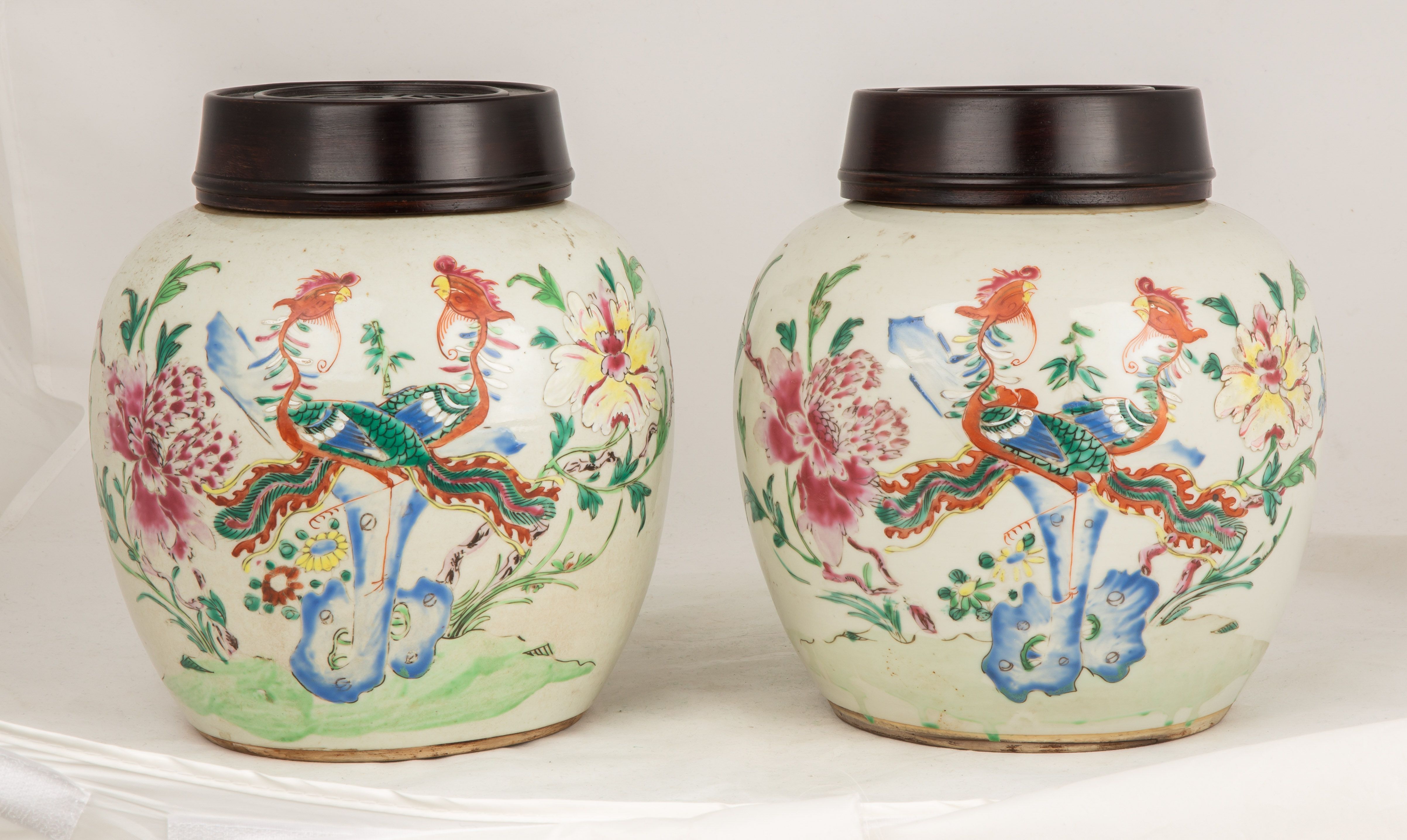 | Lot #: 117 Pair of 18th Century Famille Rose Ginger Jars |