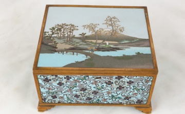 | Lot #: 17 Japanese Scenic & Floral Cloisonné Covered Box |