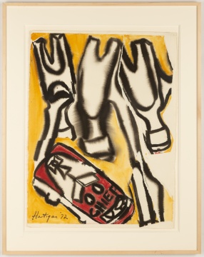 | 1972. Mixed media, gouache and collage on paper. Signed 'Hartigan '72' (lower left). |