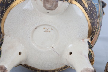 | circa 1900. Hand painted and gold leaf with foo dog finials. |