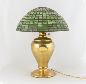 | Lot #: 69 Tiffany Studios, New York Pine Needle Base with Leaded Glass Shade |