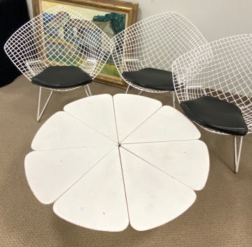 | Lot #: 118 (3) Harry Bertoia Diamond Chairs & (1) Richard Schultz Petal Coffee Table |