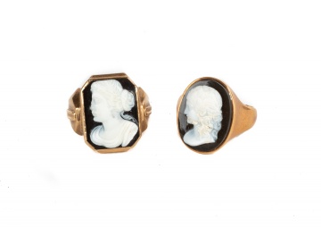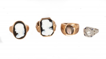| Lot #: 124 Cat Eye Opal Ring, Cameo Rings and Art Deco Diamond & Sapphire Ring |
