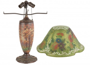 | Lot #: 153 Pairpoint Reverse Painted Shade on a Chipped Ice Art Glass Lamp Base |