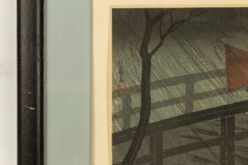 | Lot #: 364 Takahashi Hiroaki (Shotei) (Japanese, 1871-1945) "Rain on Izumibashi Bridge" |