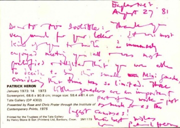 Gouache. Signed and titled (on reverse). Documents:Includes correspondence from Patrick Heron, 1981. |